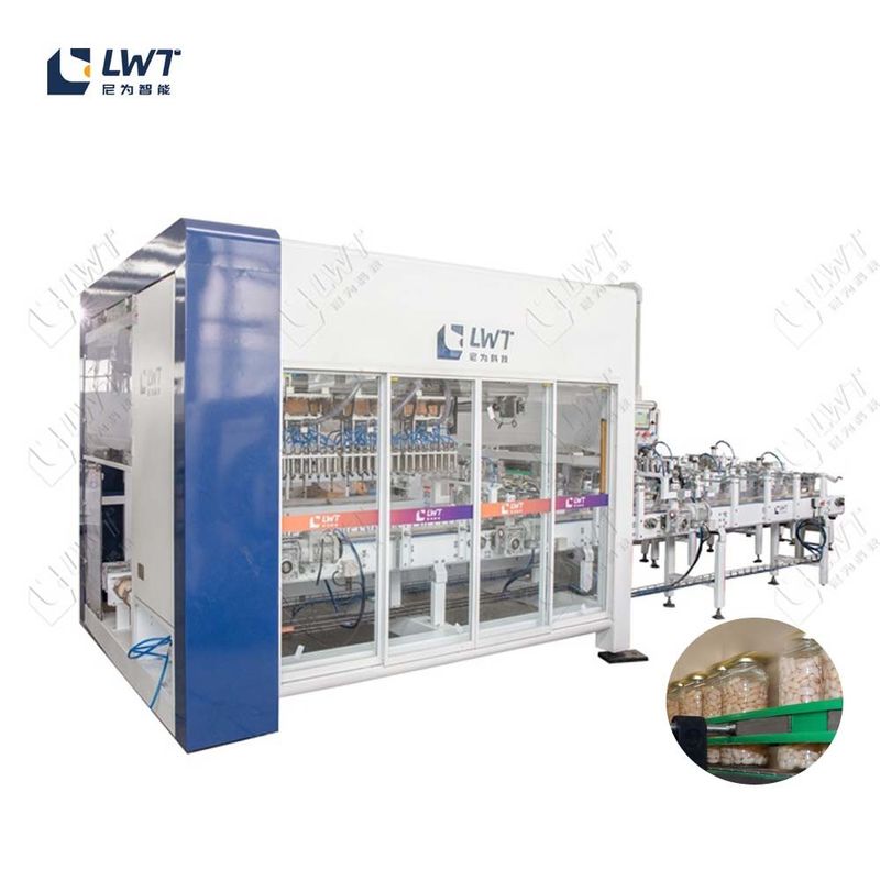 Esta máquina es adecuada para frascos de vidrio, latas de hierro, frascos de plástico, botellas de boca grande y así sucesivamente.,Ensalada de soja, carne, pollo, pescado, etc., cualquier tipo de productos sólidos enlatados, medida y relleno.